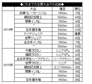 そして3月に行われた日本学生女子ハーフマラソン。3位以内でユニバーシード内定が決まり、彼女にとっては夢の舞台をつかむための大切な大会だ。初のハーフマラソンで不安こそあったものの、10`を過ぎたところで先頭集団へ躍り出る。そして終盤でさらにペースを上げて勝負に蹴りをつけ、3位でゴール。ユニバーシアードという憧れの舞台を手にした瞬間であった。