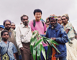 2000年からニューギニアのアンガティーヤ社会で調査を行い、その呪術信仰を背景にして、彼らの人格概念を主題とした博士論文を執筆しています。アンガティーヤの文化は、生業の舞台でもある祖先伝来の土地とその保持者との「実存」的な結びつきをその機軸に捉えています。動物殺傷も、祖先伝来の土地での狩猟・肉の獲得としてみれば、人びとと土地との関係の一環と言えます。社会的・経済的変化を背景に、土地との関わり方の変質が予想される昨今ですが、狩猟=動物の捕殺の現状を探りながら、人びとと土地との関係の変化と持続を考えてみたいと思っています。